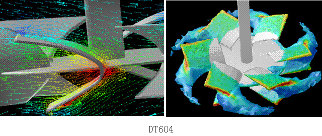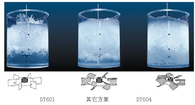 DT604攪拌器氣含率高,氧利用率也高一些,估計還可能節(jié)約10%以上的通氣量,這是十分可觀的。
