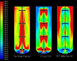 DT604的設計根據(jù)實驗結果還可以進一步改進,如采用傾斜的DT604,具有一定的軸流能力,增加底部物料混合效果,也可適當再減小功率。此外,氣體分布管的位置也很重要,一般位于2/3槳葉直徑處。