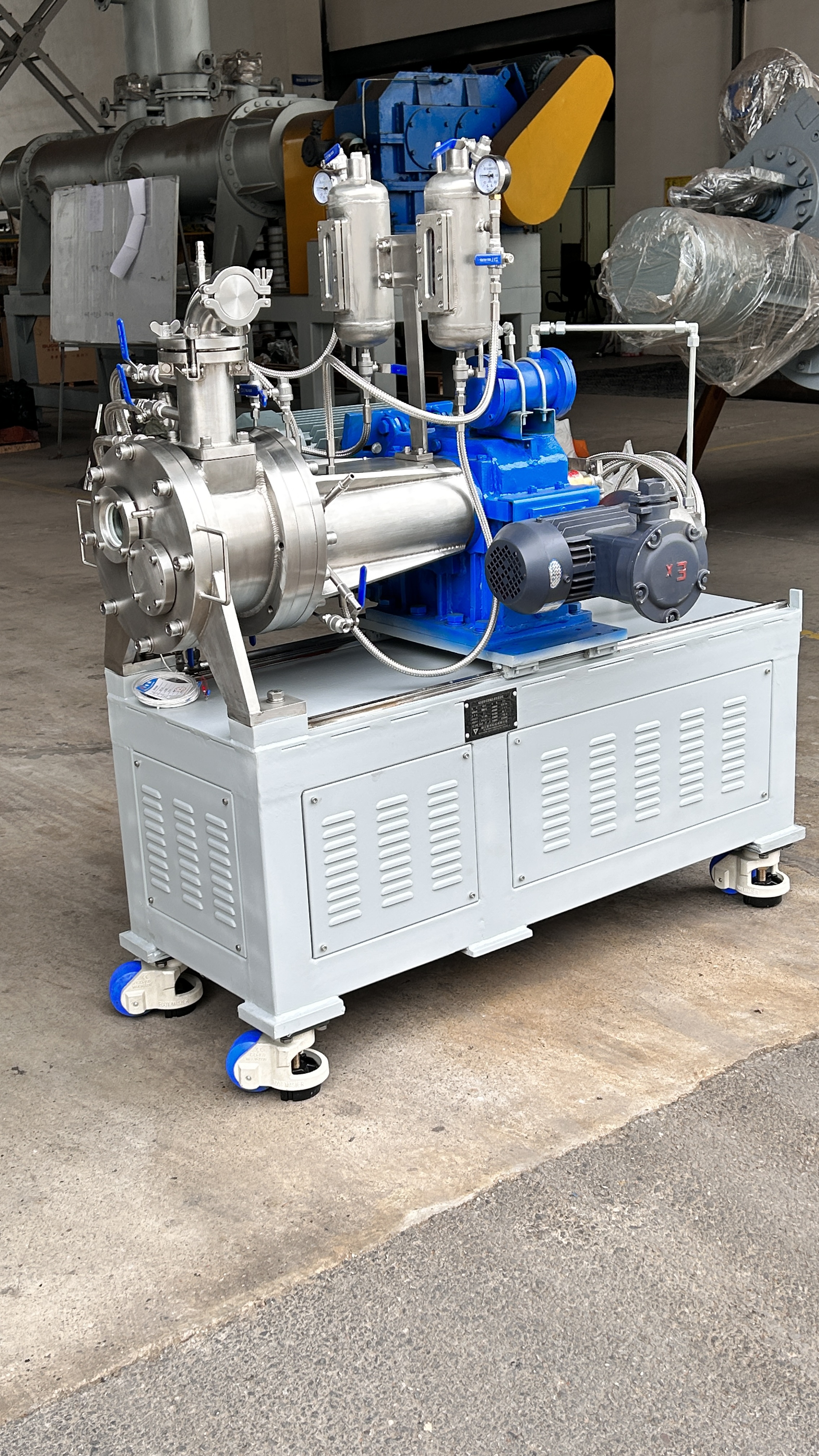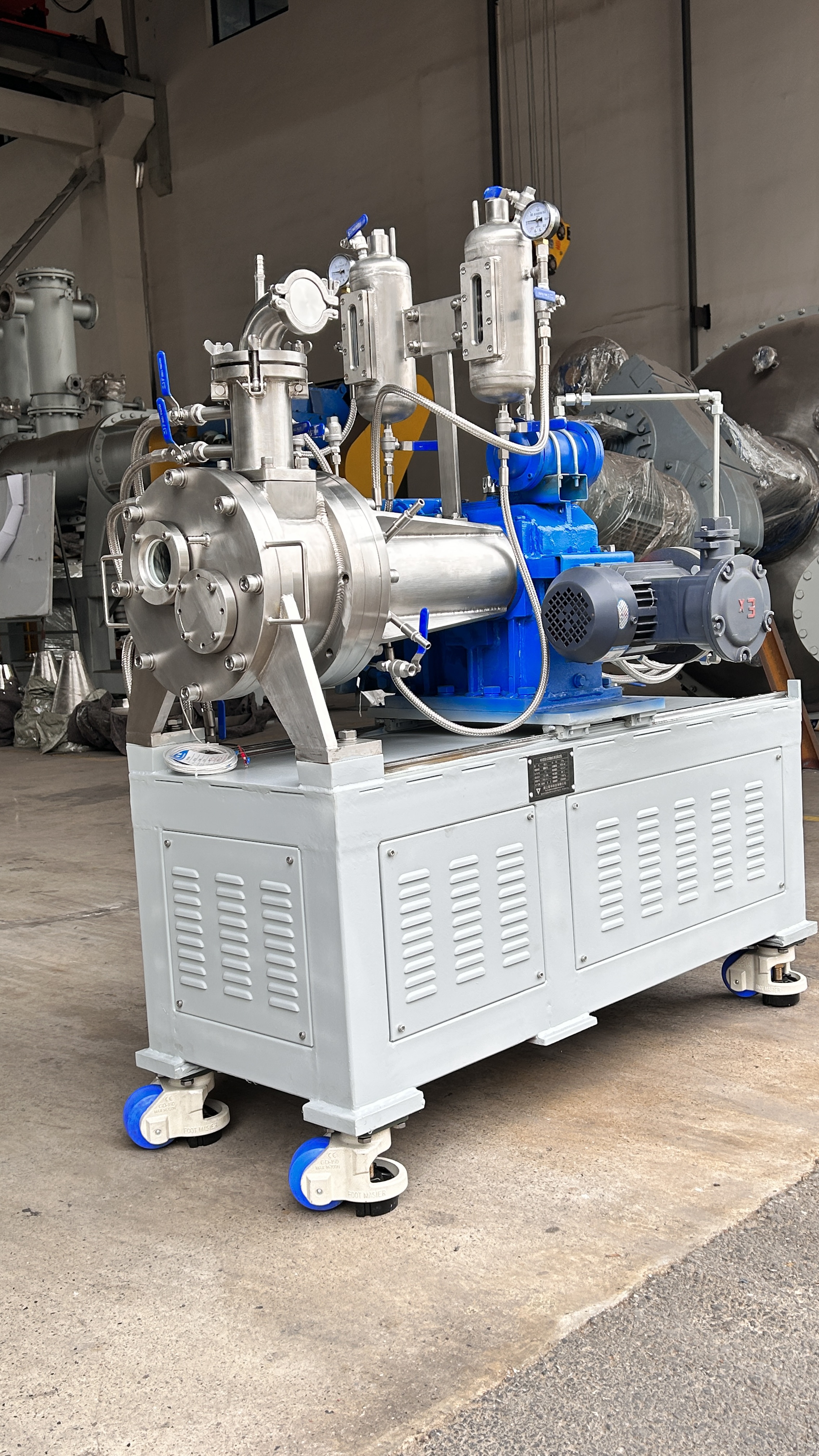 在化學(xué)、聚合物、電子、制藥、纖維等相關(guān)工業(yè)中,加工和處理一些高粘度物料或在處理過程中物料稠度發(fā)生變化時經(jīng)常碰到些問題。這個問題涉及到化學(xué)反應(yīng)、蒸發(fā)、干燥和混合等許多單元操作。WZS臥式自清潔混合機(jī)完全可以適應(yīng)高粘物料的各種處理:如化學(xué)反應(yīng)、蒸發(fā)、干燥、脫泡和混合等。
