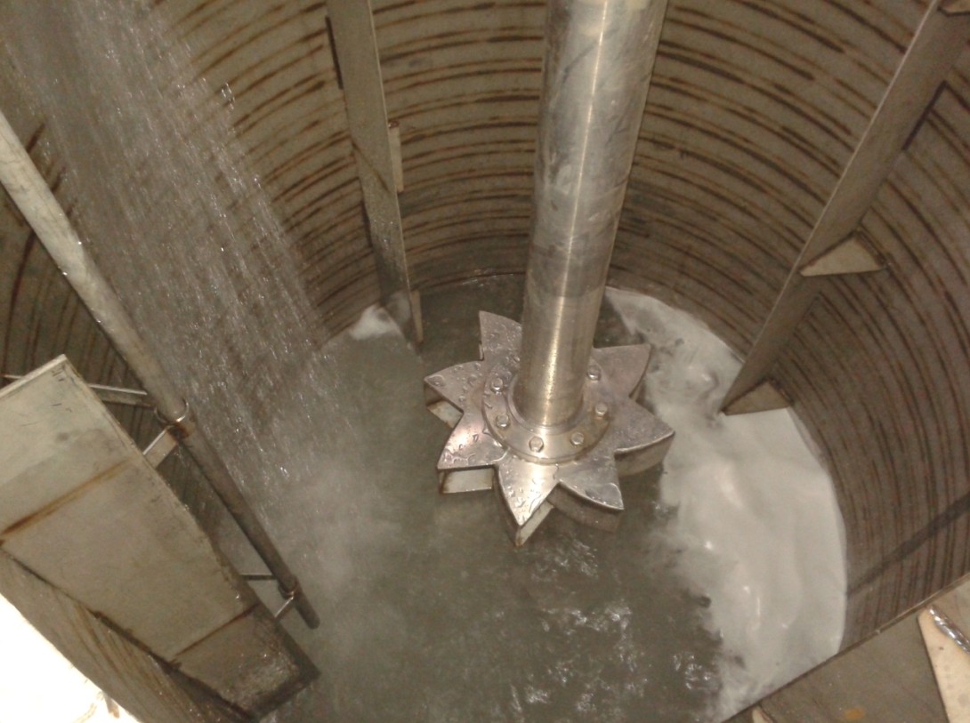 3. 利用自吸葉輪下方的曝氣葉片迅速的槳?dú)庖夯旌象w進(jìn)一步的剪切破碎,細(xì)化氣泡直徑;