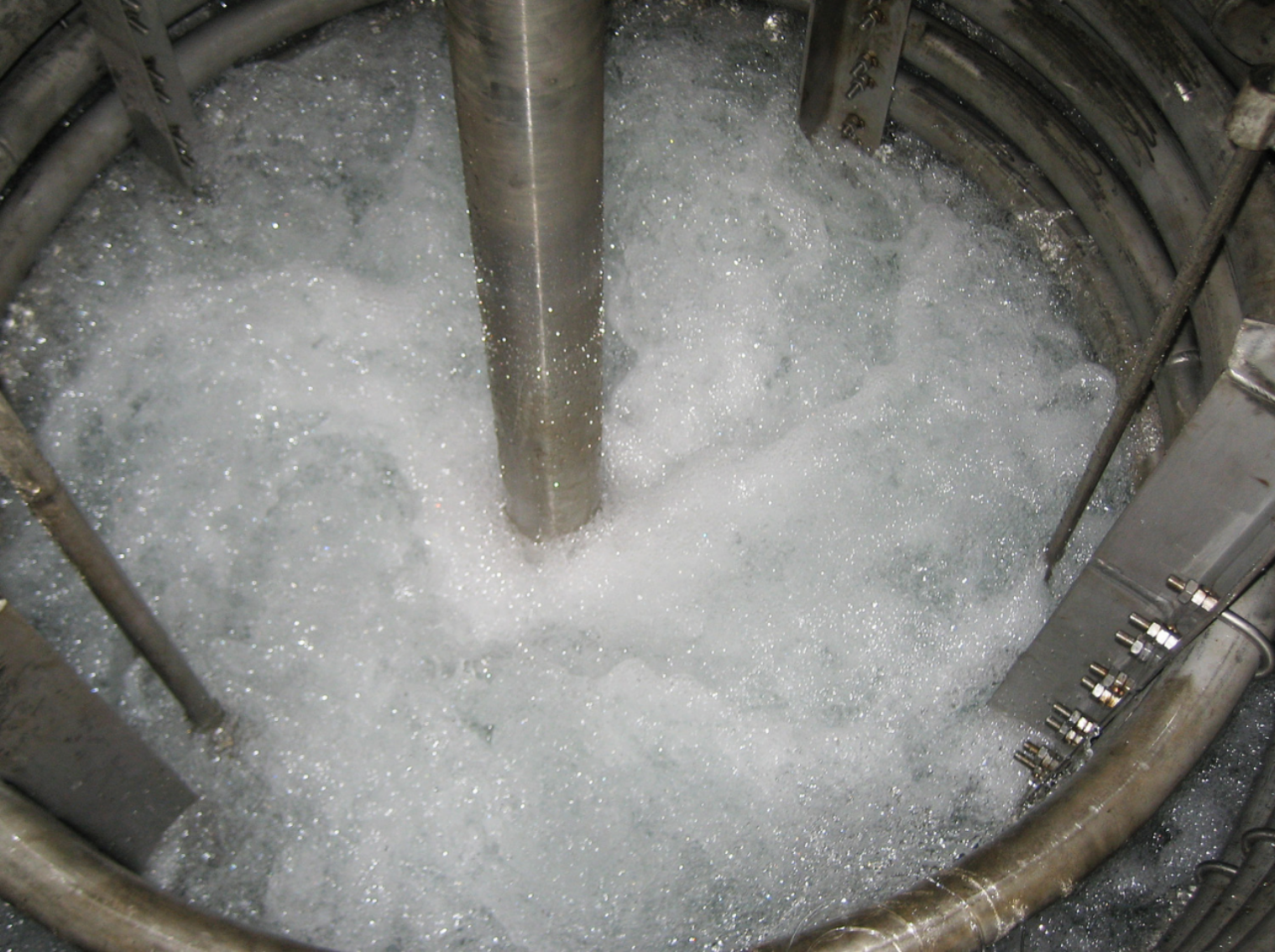 2、氣泡直徑更小,獨(dú)特的結(jié)構(gòu)設(shè)計(jì)(爆氣葉片)可以使吸入的氣破碎剪切部分接近霧化,更容易分散彌漫到釜體的每個(gè)角落;